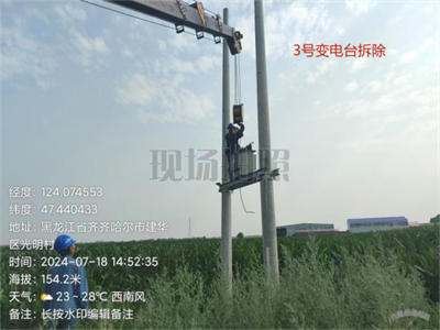 原项目17个变台存在多处安全隐患,部分电杆倾斜、拉线失效,拆除过程需严防设备坍塌、线路误碰等风险。此时正值盛夏,高温炙烤着施工现场。施工人员身着厚重防护装备,对旧变台分段拆解,一边联合技术团队实地勘察现场地形、管线分布,同步绘制初步整改设计草图。面对部分锈蚀严重、连接牢固的构件,团队采用人工配合机械的方式精准作业,同时妥善清运建筑垃圾,为后续施工扫清障碍。短短数日,17 个旧变台全部拆除完毕,以*行动拉开整改序幕。