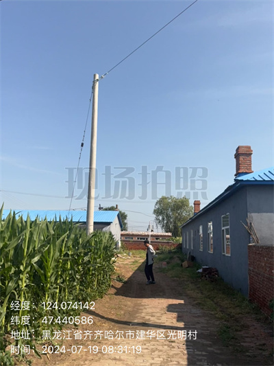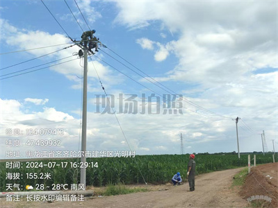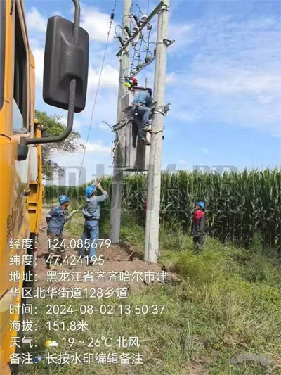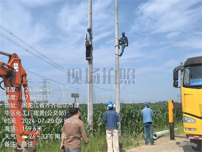 电杆质量问题是整改核心难点之一,50 余基原有电杆存在埋深不足、纹裂、倾斜等问题,直接影响线路安全稳定。为赶工期、保质量,施工团队科学划分作业小组,同步推进旧杆拆除与新杆组立。盛夏烈日下,施工人员顶着近 40℃高温,先开挖符合标准的基坑,再吊装新电杆精准就位,严格把控埋深与垂直度。针对需增设拉线的点位,团队实地勘测受力情况,规范设置拉线并紧固到位,彻底解决电杆倾斜隐患。汗水浸透工装、皮肤晒得黝黑,大家始终坚守岗位,让 50 余基新电杆稳稳矗立,为工程筑牢安全骨架。